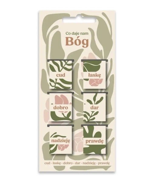 Odkryj bogactwo, jakie Bóg oferuje każdemu z nas, dzięki naszym magnetycznym zakładkom inspirowanym Słowem Bożym. Ten piękny zestaw sześciu zakładek to nie tylko praktyczny dodatek do książek, ale także codzienne przypomnienie o cudach, które daje nam Stwórca. Zainspirowane Bożymi darami: cudem, łaską, dobrem, darem, nadzieją, prawdą, nasze zakładki w nowoczesnym roślinnym wzorze z kwiatami to doskonałe połączenie estetyki i duchowości.