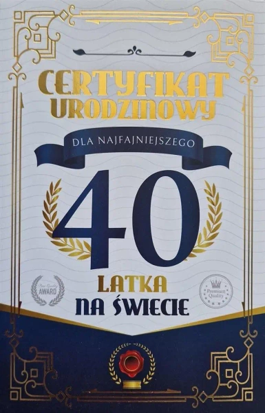Karnet Certyfikat Urodzinowy 40 urodziny męskie - YEKU