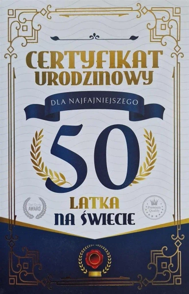 Karnet Certyfikat Urodzinowy 50 urodziny męskie - YEKU