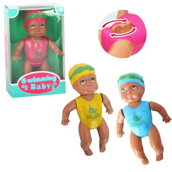 Pływająca lalka, którą nakręca się na plecach. Po nakręceniu i położeniu na wodzie lalka będzie pływać.