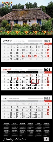 - Kalendarz 2025 Trójdzielny PREMIUM z wypukłą główką KT-2 V.76 WIEJSKA CHATA