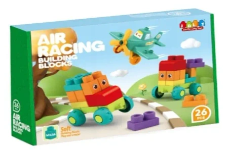 Zestaw miękkich (wykonanych z elastycznego tworzywa) i twardych (plastikowych) klocków, bezpiecznych dla dzieci