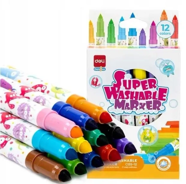 Flamastry zmywalne z fibrową końcowką12 kol DELI