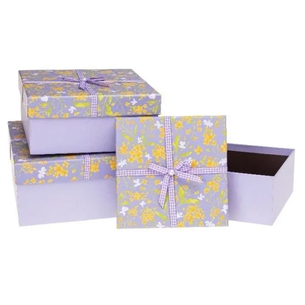 Zestaw pudełek prezentowych 3szt, motyw fioletowy z żółtymi kwiatami