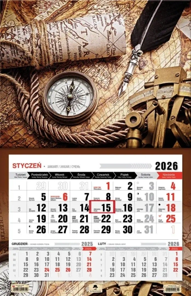 Kalendarz 2026 jednodzielny 3XL antyczna mapa - Pan Kalendarzyk