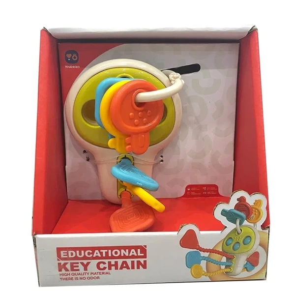 Silikonowe klucze. Zabawka zawiera również trzy silikonowe elementy do przeciągania.