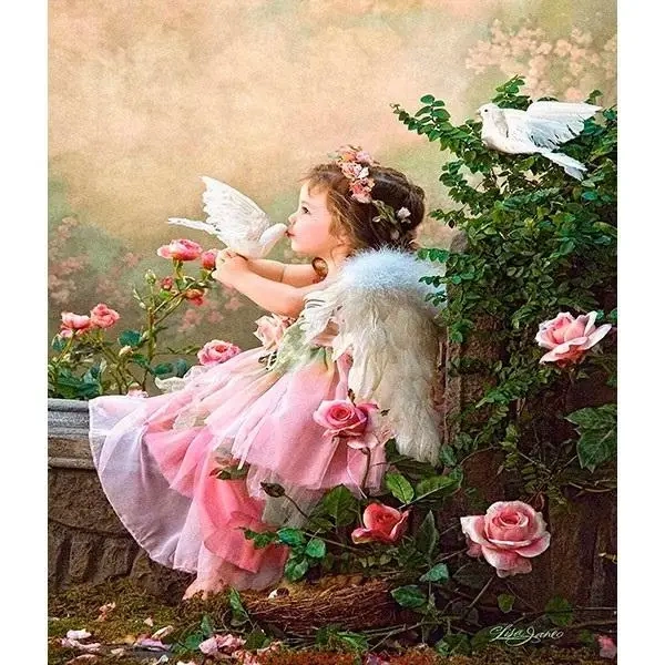 Mozaika diamentowa 5d 40x30cm dziewczynka z gołębiami