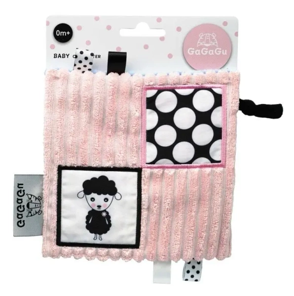 Kocyk posiada kontrastujące kolory i wzory, co stymuluje wzrok dziecka, a szeleszczący materiał wewnątrz zabawki pobudza jego słuch. Dziecko ma możliwość poznania różnych faktur, dzięki czemu rozwija swój zmysł dotyku. Dodatkowe tasiemki, pluszowe pętelki, duża etykieta - ułatwiają dziecku chwyt zabawki i wspomagają tzw. motorykę małą (ruchy palców i dłoni). Kocyk jest dwustronny - na każdej stronie znajduje się inna grafika: z jednej strony owca, z drugiej tygrys. Zabawka jest bardzo lekka i poręczna, łatwa do przechowywania, idealna na spacer lub wycieczkę. Informacje o produkcie (w punktach): kontrastujące kolory i wzory - stymulują wzrok dziecka różne faktury materiału - stymulacja dotykowa szeleszczący materiał - rozwój słuchu różne elementy (wstążki, pętelki, etykieta) - wspomaganie motoryki małej (palec i ruchy rąk) lekka i poręczna zabawka - na spacer