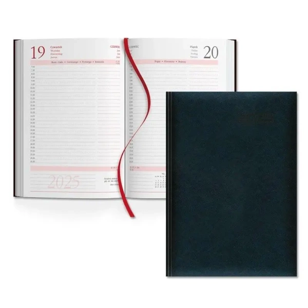plan roczny, miesięczny, telefony kierunkowe, skorowidz alfabetyczny, drogowa mapa Polski, administracyjna mapa Europy, mapki z odległościami drogowymi w Polsce i Europie, kalendarz stuletni, strefy czasowe, daty imienin i inne