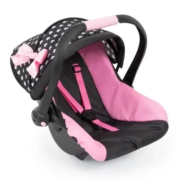 Dzieki temu nowoczesnemu fotelikowi samochodowemu w bardzo modnym kolorze pokochasz kazda jazde samochodem! Piekny fotelik samochodowy nadaje sie dla lalek do 46 cm. Dzieki miekkiej tkaninie oraz oslonie przeciwslonecznej lalka lub pluszowa zabawka siedza bardzo wygodnie i sa chronione przed sloncem i wiatrem na twarzy. Dzieki zintegrowanemu pasowi bezpieczenstwa twoje "male kochanie" dotrze bezpiecznie do celu a w trakcie podrózy moze slodko snic. Jesli polozysz fotelik samochodowy dla lalek na podlodze i lekko go dotkniesz, to sie zakolysze. Ergonomiczny uchwyt jest wygodny do przenoszenia, dzieki czemu lalka czy pluszowa zabawka moga byc zabierane wszedzie, gdzie chcesz. Dodatkowo fotelik samochodowy dla lalek mozna umiescic na wózkach dla lalek Neo Measurements (cm): 45 x 34 x 38