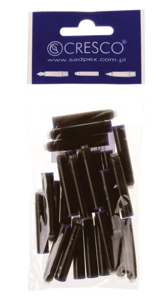 Naboje atramentowe CRESCO oferują atrament o doskonałej jakości w głębokim niebieskim odcieniu. Są one kompatybilne z klasycznymi piórami wiecznymi oraz piórami kulkowymi przystosowanymi do wymiennych naboi. Dzięki specjalnej formule, niebieski atrament można łatwo usunąć za pomocą zmazywacza. Opakowanie zawiera 25 sztuk naboi, umieszczonych w praktycznym woreczku z możliwością zawieszenia dzięki eurozawieszce.