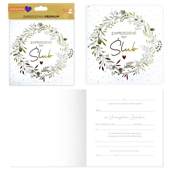 opakowanie: woreczek zawierający 5 sztuk zaproszeń z kopertami,