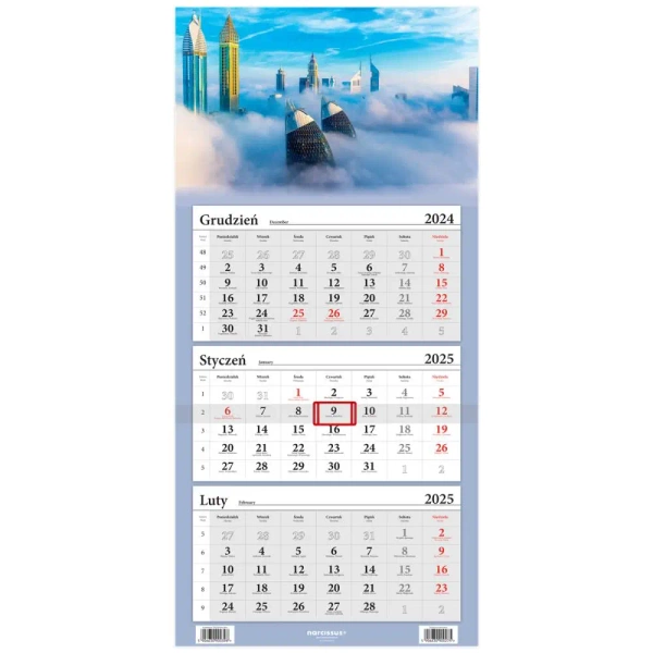 Kalendarz 2025 Trójdzielny Dubaj w chmurach - Sztuka Rodzinna
