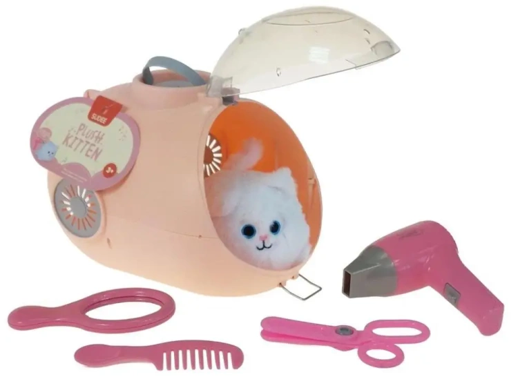 Plastikowy transporter z małym kotkiem pluszowym, 30,5x21x18,8cm
