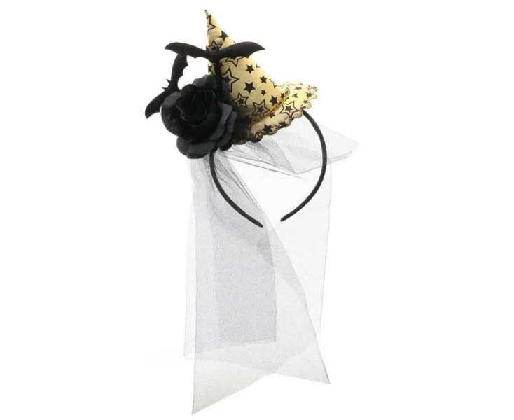 OPASKA NA GŁOWĘ KAPELUSZ Z WOALKĄ, ZŁOTA