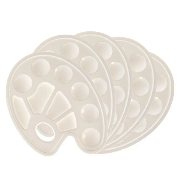 Przedstawiamy białą paletkę malarską, która jest świetnym narzędziem do mieszania różnorodnych kolorów farb. Wyposażona w 10 praktycznych wgłębień, umożliwia komfortowe mieszanie odcieni. Dzięki ergonomicznemu kształtowi, użytkowanie staje się niezwykle wygodne. Dodatkowo, paletka jest łatwa do czyszczenia, co ułatwia jej codzienne użytkowanie. W zestawie znajduje się 5 sztuk tego praktycznego akcesorium.