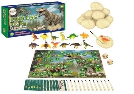 Zestaw Jaj Dinozaurów Figurki Wykopaliska Gra Planszowa 12 Szt Zestaw jaj dinozaurów oraz gra planszowa to doskonała zabawa, która łączy edukację z rozrywką. W skład zestawu wchodzi 12 jaj dinozaurów, które dzieci mogą odkrywać za pomocą specjalnych narzędzi do wykopalisk. Każde jajo zawiera figurkę dinozaura, którą można wydobyć, korzystając z dostarczonych akcesoriów, takich jak młotek, dłuto i pędzelek. Proces odkrywania dinozaurów z jaj to ekscytujące doświadczenie, które angażuje dzieci w zabawę przypominającą prawdziwe wykopaliska. Do każdego jaja dołączone są narzędzia, dzięki czemu zestaw idealnie nadaje się do przedszkola lub szkoły. Zestaw angażuje dzieci w aktywne odkrywanie i zabawę w grupie. Używanie narzędzi rozwija zdolności manualne i cierpliwość, a także wzbudza zainteresowanie paleontologią i historią dinozaurów. Po wydobyciu figurek, dzieci mogą je wykorzystać do gry planszowej dołączonej do zestawu. Gra planszowa to świetny sposób na kontynuowanie zabawy, łącząc elementy edukacyjne z rywalizacją i współpracą. Używając wydobytych figurek dinozaurów, dzieci mogą grać w grę, która jest pełna przygód i wyzwań. Gra planszowa rozwija umiejętności strategicznego myślenia, planowania i współpracy, a także pozwala dzieciom na stworzenie własnych historii i scenariuszy z udziałem dinozaurów. Ten zestaw nie tylko zapewnia godziny kreatywnej zabawy, ale także wspiera rozwój poznawczy i manualny dzieci. Jest idealny do zabawy zarówno w pojedynkę, jak i w grupie, oraz stanowi świetne narzędzie edukacyjne, które łączy naukę z przyjemnością. Zestaw jaj dinozaurów oraz gra planszowa to fascynująca i angażująca forma zabawy, która na pewno zainteresuje każdego młodego odkrywcę. Wymiary jaja: 7,5cm x 5cm Wymiary opakowania: 32cm x 16cm x 6cm Posiada certyfikat CE, ponadto jest zgodny z normą EN71. Przeznaczony dla dzieci powyżej 3 roku życia.