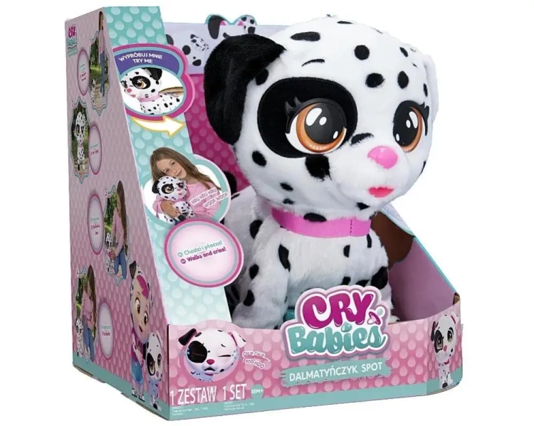Poznaj interaktywnego dalmatyńczyka Cry Babies wspaniałą zabawkę, która stanie się najlepszym przyjacielem Twojego dziecka! Ten uroczy piesek, którego możesz zabrać na spacer, przyniesie mnóstwo radości i zabawy. Dalmatyńczyk interaktywny wydaje aż 20 różnych dźwięków, co sprawia, że zachowuje się jak prawdziwy piesek.