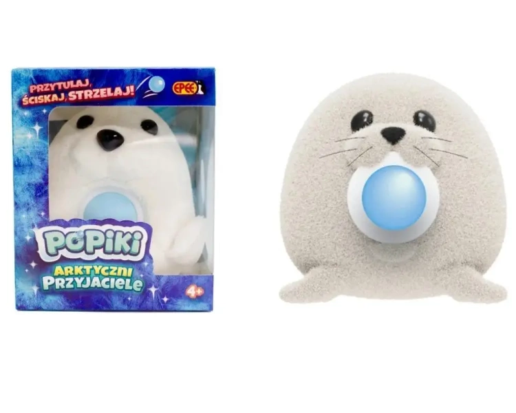 Popiki to urocze, pełne życia pluszaki-zwierzątka, które są idealnymi towarzyszami zabawy dla dzieci w każdym wieku. Każdy Popik z tej serii Arktyczni Przyjaciele ma unikalne cechy i osobowość, które sprawiają, że zabawa z nimi jest jeszcze bardziej ekscytująca. Po naciśnięciu Popika w odpowiednim miejscu, zwierzątko wydaje zabawny dźwięk pop i strzela małą piłeczką, co sprawia, że zabawa staje się dynamiczna i pełna radości. To interaktywne działanie rozwesela i bawi, a jednocześnie rozwija zdolności motoryczne dzieci.