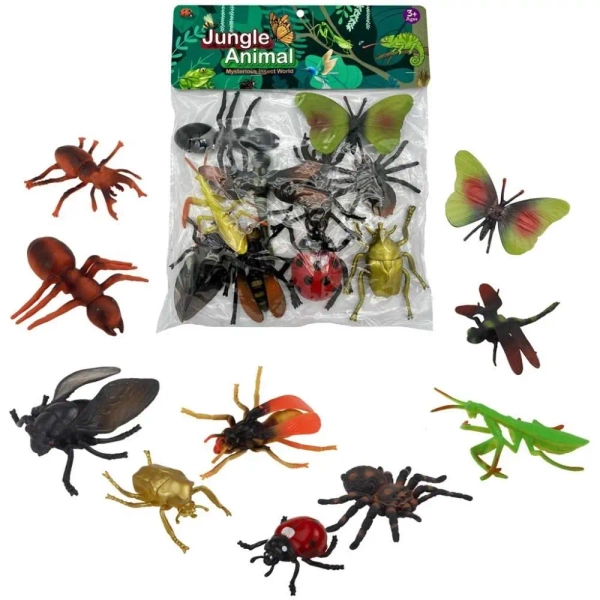 Zestaw 10 figurek owadów i pająków.