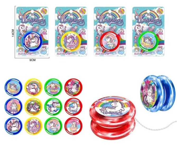 Zabawka jojo ze wzorem jednorożca w której po wprawieniu w ruch uaktywnia się dioda LED, dając efekt wizualny.