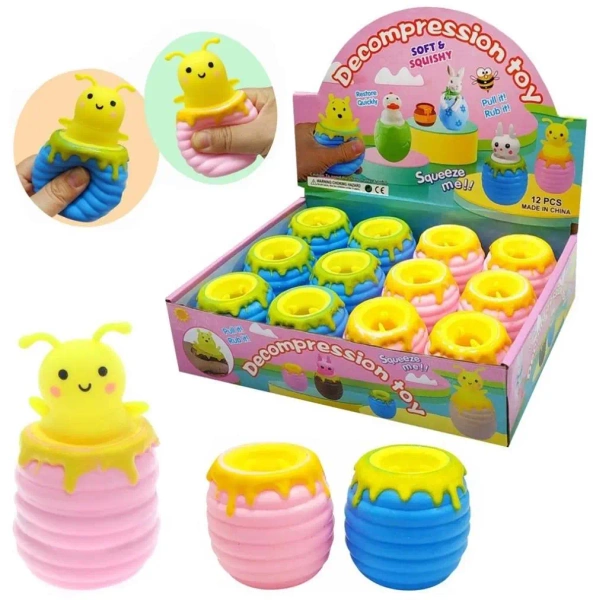 Gadżet dla dzieci - antystresowa pszczółka. Idealna zabawka dla dzieci, które muszą mieć stale zajęte czymś rączki. Po ściśnięciu pojawia się nam głowa i łapki pszczółki. Gniotek może też służyć jako element rehabilitacji.