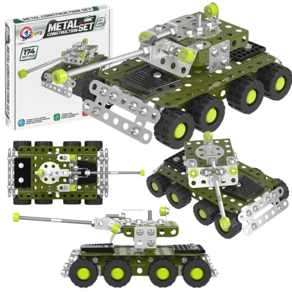 Zestaw metalowej konstrukcji to doskonała propozycja dla miłośników modelarstwa i architektury. Składający się z 174 elementów, ten model umożliwia zbudowanie doskonale odzwierciedlonego czołga wojskowego. Dzięki innowacyjnym klipsom, montaż metalowych płytek jest szybki i łatwy, co sprawia, że tworzenie modelu jest przyjemnością zarówno dla dzieci, jak i dorosłych.