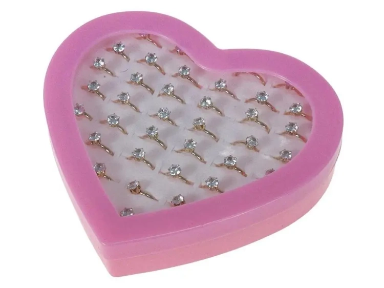 zestaw 36 szt. pierścionków metalowych, regulowanych z białym diamentem