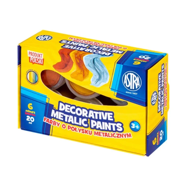 Farby dekoracyjne Astra o połysku metalicznym 6 kolorów po 20 ml - ASTRA art-pap