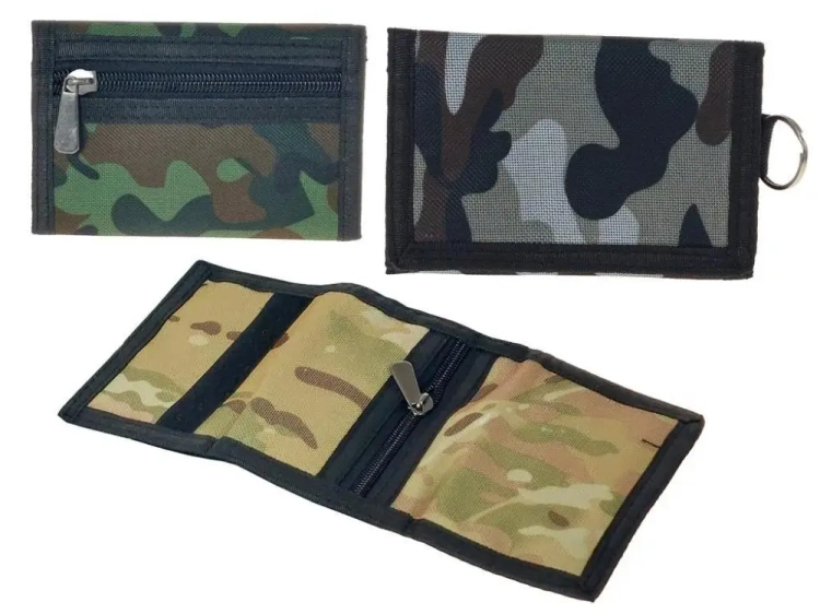 Oferujemy unikalny portfel w wojskowym stylu moro. Charakteryzuje się zróżnicowanymi wzorami, co sprawia, że każdy egzemplarz jest wyjątkowy. Dlatego też przesyłane przez nas produkty są wysyłane losowo, co dodaje element zaskoczenia podczas odbioru przesyłki.