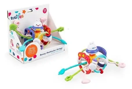 Zabawka pełna sensorycznych atrakcji, które nie tylko zabawią maluszka, ale dostarczą mu też okazji do rozwijania zdolności poznawczych. Znajdujący się na górze zabawki króliczek uroczo piszczy przy naciskaniu. Znajdziemy tu też linki do przeciągania, różniące się kolorem, kształtem i fakturą, ruchome koraliki, terkocący kwiatek - grzechotkę, kuleczkę do przesuwania oraz trzy kuleczki pop it do wciskania. Wszystkie te precyzyjne czynności pomogą bobasowi ćwiczyć motorykę małą i odkrywać zależności przyczynowo - skutkowe.