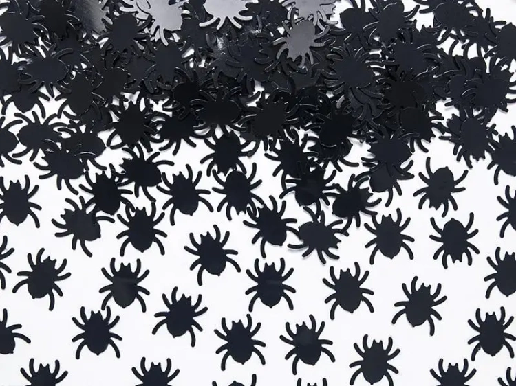 Konfetti Pająki w kolorze czarnym, wymiary 1,2x1,2 centymetra.