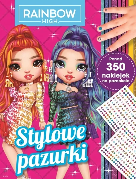 Na kolorowych stronach znajdziesz przyjaciół ze szkoły mody RAINBOW HIGH, którzy czekają na pokolorowanie. Do książeczki zostały dołączone kolorowe naklejki do ozdobienia i stylizacji paznokci. Jest ich ponad 350! Wspaniała zabawa gwarantowana!