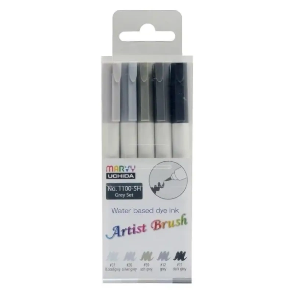 Flamastry Artist Brush Grey 5 kolorów - Marvy