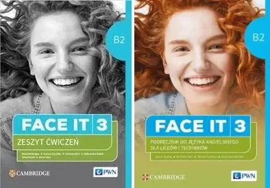 Podręcznik Face it 3 do nauki języka angielskiego na poziomie B2 przeznaczony jest dla uczniów liceów i techników. Uzupełnieniem podręcznika są ćwiczenia Face it 3. B2. Język angielski dla liceów i techników. Zeszyt ćwiczeń. Kurs przygotowuje uczniów do matury już od pierwszego tomu, uwzględniając potrzeby klas na różnych poziomach znajomości języka angielskiego. Kurs powstał dzięki połączeniu wiedzy i doświadczenia uznanych wydawców, jakimi są Cambridge University Press & Assessment oraz Wydawnictwo Naukowe PWN. O serii: Face It to nowoczesna publikacja, która spełnia potrzeby i wpisuje się w możliwości pokolenia Z. Współczesna młodzież, która szybko się nudzi i lubi różnorodność formy oraz prostotę przekazu, z pewnością doceni małe dawki informacji, ramki z gotowymi schematami wypowiedzi czy praktyczne wskazówki ułatwiające naukę języka angielskiego. Ikony i nagłówki towarzyszące zadaniom jasno wskazują na zakres i celowość każdego ćwiczenia, a także na jego zastosowanie w kontekście przygotowania do matury. Atuty serii: Sekcje Skills Revision – na bazie tematyki kulturowej (Culture) lub sytuacji z życia codziennego (Life Skills), oswajają ucznia z typowymi zadaniami maturalnymi oraz wdrażają go do stosowania strategii egzaminacyjnych i komunikacyjnych. Sekcje Writing Guide – zawierają nowatorskie schematy, które pomagają zaplanować wypowiedź pisemną zgodnie z wymaganiami maturalnymi. Sekcje Extra Practice – znajdują się na końcu każdego modułu i zawierają dodatkowe zadania dla tzw. fast finishers. To spodoba się Waszym uczniom: Materiał na jedną lekcję zajmuje jedną stronę w podręczniku. Słownictwo i gramatykę wprowadzamy aż dwukrotnie w każdym module, za to w mniejszych ilościach. Ilustrujemy zagadnienia gramatyczne, opierając się na zwięzłych fragmentach tekstu. Zwracamy uwagę na istotne środki językowe oraz warte zapamiętania sformułowania i wyrażenia, umieszczając je w ramkach Useful Language, Look out i Prepare to … W ćwiczeniach z nagłówkiem Polish vs English i Learn English through Polish wspieramy się językiem polskim, aby zilustrować kontekst, w którym używa się danej struktury gramatycznej lub leksykalnej w języku angielskim. Dzięki statystykom Cambridge English Corpus pomagamy unikać błędów najczęściej popełnianych przez polskich uczniów, stosując w tym celu specjalnie oznakowane zadania. Wykorzystujemy filmy wideo oraz animacje gramatyczne – współczesne formy przekazu, na co dzień używane przez nastolatków. W ćwiczeniach oznaczonych ikoną TEEN WORLD nawiązujemy do tematyki bliskiej młodzieży z pokolenia Z.