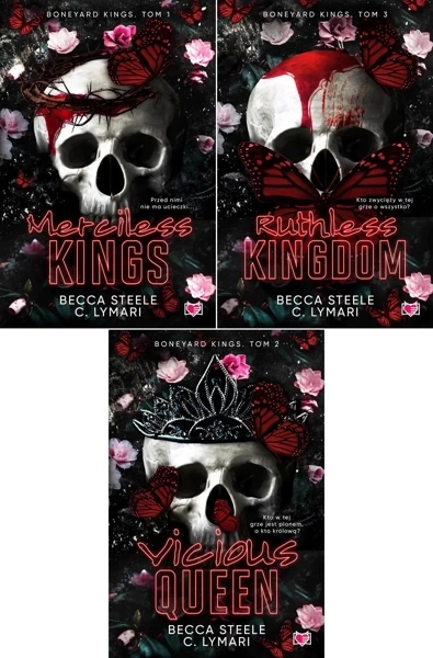 To królestwo może mieć tylko trzech władców... Czasem to, co bierzemy za nieszczęście, może się okazać błogosławieństwem w przebraniu. To właśnie spotkałoEverly. Myślała, że jej relacja z trzema niezwykłymi chłopakami doprowadzi ją do zguby, ale teraz ma ich po swojej stronie. Wspólnie pokażą, jak daleko są gotowi się posunąć, aby zrealizować swoje cele. Przez ich miasto płynie rzeka krwi, a oni poprzysięgli zdemaskować winnych. Teraz trzej rywale stają przeciwko trzem królom ich królowej. Wkrótce przekonają się, jak bezwzględne może być ich królestwo. W tej najokrutniejszej z gier zwycięstwo nigdy nie przychodzi łatwo, ale kiedy nagrodą jest zemsta, warto zaryzykować wszystko. Ruthless Kingdom. Boneyard Kings. Tom 3 to finałowy tom trylogii Boneyard Kings! Ostrzeżenie: Książka zawiera sceny przemocy, opisy brutalnych i perwersyjnych praktyk seksualnych, a także elementy horroru, które mogą wywoływać niepokój. Treść jest fikcją literacką i niestanowi realistycznego odzwierciedlenia. Powieść przeznaczona dla dorosłych czytelników i czytelniczek.