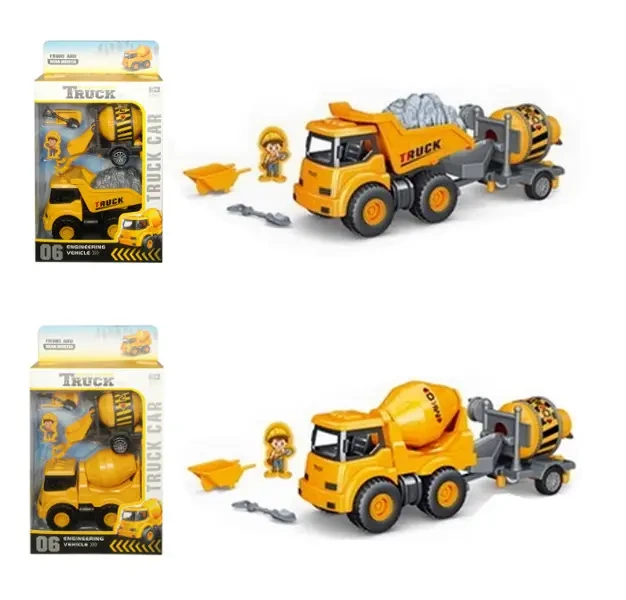 Zestaw budowlany z wywrotką, zbiornikiem mieszającym beton, figurką robotnika, taczką i łopatą. Pojazd posiada ruchome części, ma napęd friction. Produkt będzie uzupełnieniem zabawy w plac budowy. Produkt występuje w kilku wersjach, wybierany losowo. Cena dotyczy jednej sztuki. Zabawka dla dzieci od 3 lat. Podane wymiary są wymiarami opakowania. Produkt zapakowany w kartonowe opakowanie z przezroczystym okienkiem.