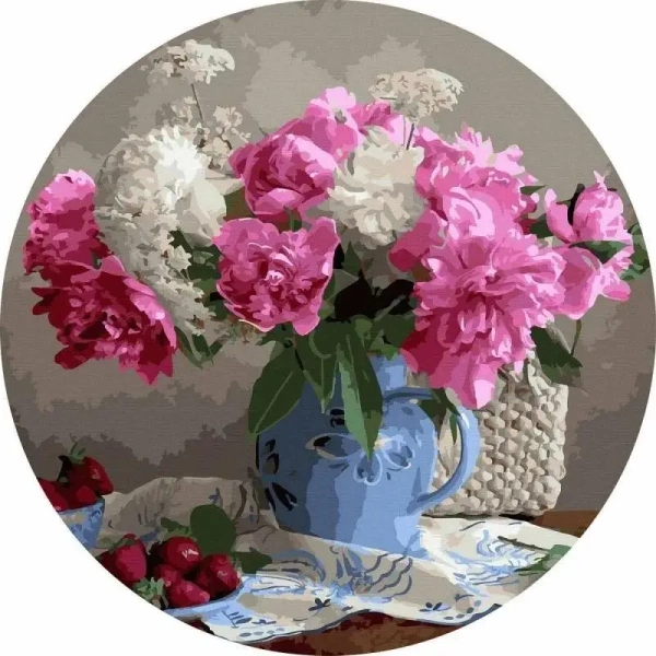 Malowanie po numerach okrągłe - Kwiaty i truskawki - Twoje Hobby