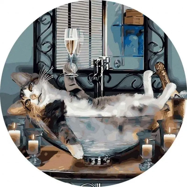 Malowanie po numerach okrągłe - Musujący kot 40cm - Twoje Hobby