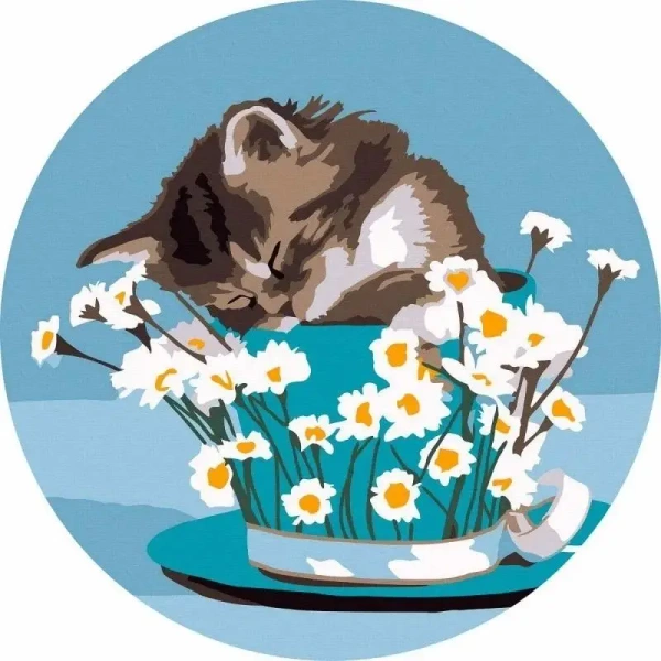Malowanie po numerach okrągłe - Kotek i stokrotki - Twoje Hobby