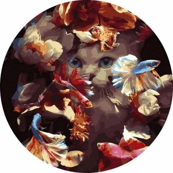 Malowanie po numerach okrągłe - Kot w rybkach 40cm - Twoje Hobby