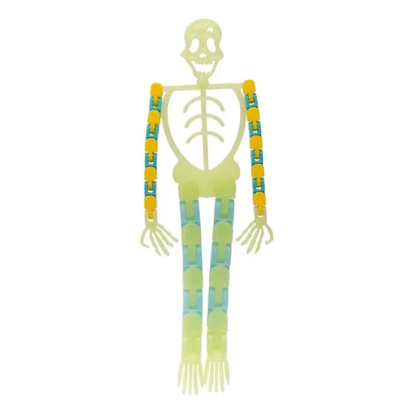 Figurka świecąca w ciemności - giętki szkielet idealny do zabawy podczas imprezy Halloween. Giętki szkielet, którego można wyginać i ustawiać w różnych pozycjach. Świeci w ciemności, dodając efektownego elementu do dekoracji Halloweenowej. Doskonały sposób na odstresowanie i satysfakcję z wyginania jego elementów. Idealny prezent na imprezę Halloweenową, zastępujący słodycze. Nasza figurka świecąca w ciemności to zabawny kościotrup, uśmiechnięty szkielet, którego można wyginać w każdą stronę. Zginanie jego elementów jest nie tylko satysfakcjonujące, ale także odstresowuje. Ta unikalna figurka świetnie nadaje się do zabawy na imprezach Halloweenowych, dodając niepowtarzalnego klimatu i atmosfery. Jest także doskonałym wyborem jako nietypowy upominek zamiast słodyczy, dzięki swojej oryginalności i funkcjonalności. Wymiary: 17x6,5x1,3 cm. Liczba w opakowaniu: 1 sztuka. Dodaj naszą figurkę świecącą w ciemności do koszyka i przygotuj się na niezapomnianą zabawę oraz niepowtarzalną atmosferę na Twojej imprezie Halloween!