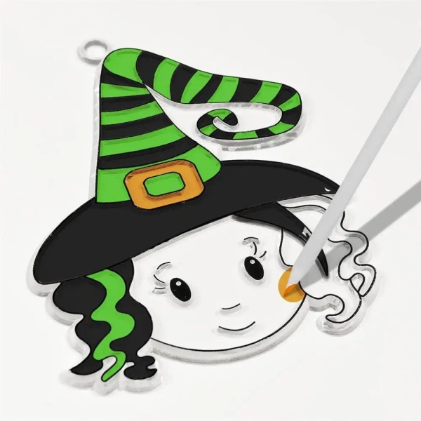 Uniwersalny halloweenowy witrażyk do malowania, idealny dla dzieci i dorosłych. Zestaw zawiera farbki i pędzelek, umożliwiając kreatywne spędzenie czasu. Doskonale sprawdzi się jako zabawa podczas imprezy z okazji Halloween. Witrażyk o wymiarach 9x9.5 cm stanowi doskonałą ozdobę na okno lub ścianę, dodając halloweenowego klimatu wnętrzom. Dzięki swojej wszechstronności, sprawdzi się w każdej aranżacji halloweenowej, wprowadzając magiczną atmosferę do domu. Wykonany z wysokiej jakości materiałów, gwarantuje trwałość i estetyczny wygląd. Idealny do malowania według własnego pomysłu, co pozwala na tworzenie unikalnych dekoracji. Wszechstronne zastosowanie - świetny jako ozdoba na okno, ścianę, czy element dekoracji halloweenowej. Kreatywna zabawa wspomagająca małą motorykę. Materiał: Wysokiej jakości tworzywo, farbki i pędzelek. Rozmiar: 9x9.5 cm, idealny do różnorodnych aranżacji. Kolor: Transparentny, do malowania według własnego pomysłu. Zastosowanie: Dekoracja halloweenowa, ozdoba na okno, ścianę, uniwersalne zastosowanie.