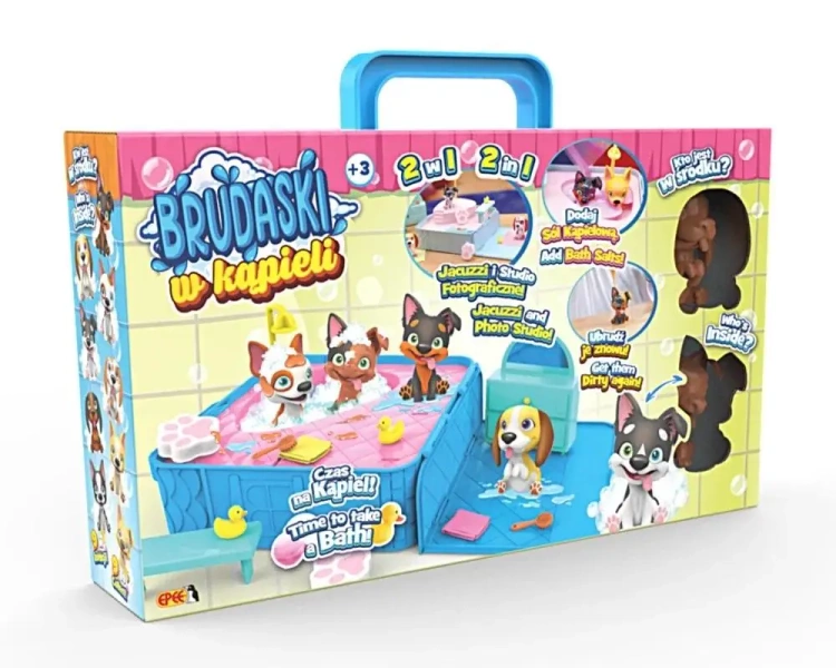 Kolekcja Brudaski w kąpieli to urocze pieski, które zapewnią niekończącą się zabawę w brudzenie i mycie! Te wyjątkowe zabawki są stworzone, aby dostarczyć radość dzieciom, które uwielbiają kreatywną i prostą zabawę. Każdego pieska można brudzić specjalnym błotkiem, a następnie umyć pod wodą, ciesząc się czystością i świeżością. Kąpiele z Brudaskami to prawdziwa frajda, zwłaszcza dzięki dołączonym aż pięciu akcesoriom, które urozmaicą każdą kąpiel.