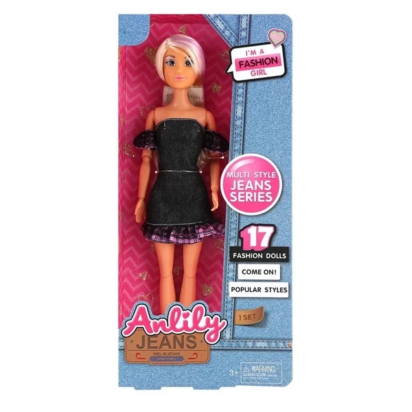 Lalka 29 cm w modnej dżinsowej sukience Lalka potrafi zginać ręce oraz nogi