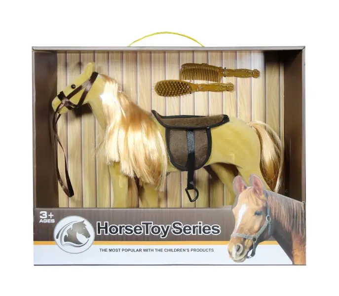 Figurka konika z siodłem oraz grzebieniem i szczotką do czesania grzywy i ogona.