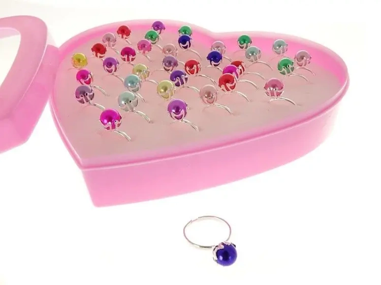 zestaw 36 pierścionków, regulowane w plastikowym etui - serce; Box