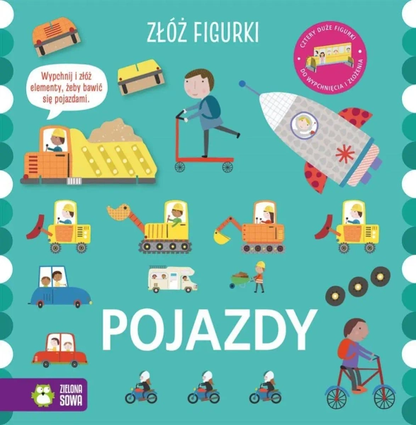 Idealna książka do wspólnej zabawy. W środku czekają ciekawe fakty o pojazdach, wspaniałe ilustracje z wieloma szczegółami do odnalezienia oraz niespodzianka: duże tekturowe figurki do złożenia!