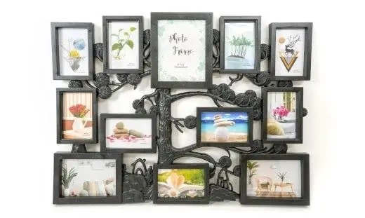 plastikowa ramka na 9 zdjęć 10 x 15 cm, 2 zdjęcia 13 x 18 cm i 1 zdjęcie 15 x 20 cm, wymiary ramki 57 x 75,5 cm, do zawieszenia