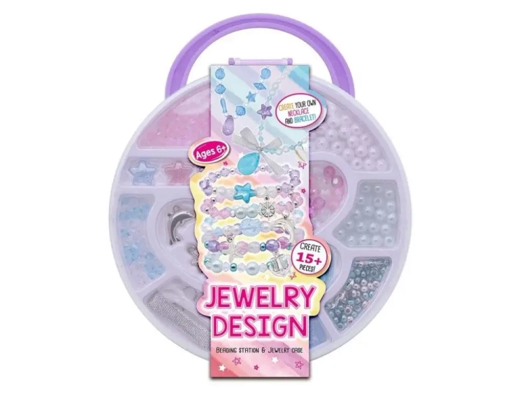 Zestaw koralików i sznurków do robienia biżuterii, w kuferku; 22,5x19x4,5cm, box